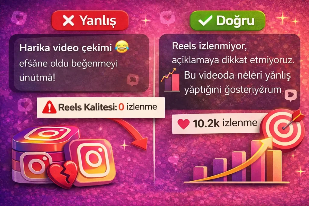 Reels izlenmiyor ya da izlenmeler yerinde sayıyor. Video kaliteli, kurgu fena değil, hatta bazen “bu kesin tutar” dediğin içerikler bile beklediğin etkileşimi almıyor. Sorun çoğu zaman video değil. Sorun, videonun altına yazdığın metin.